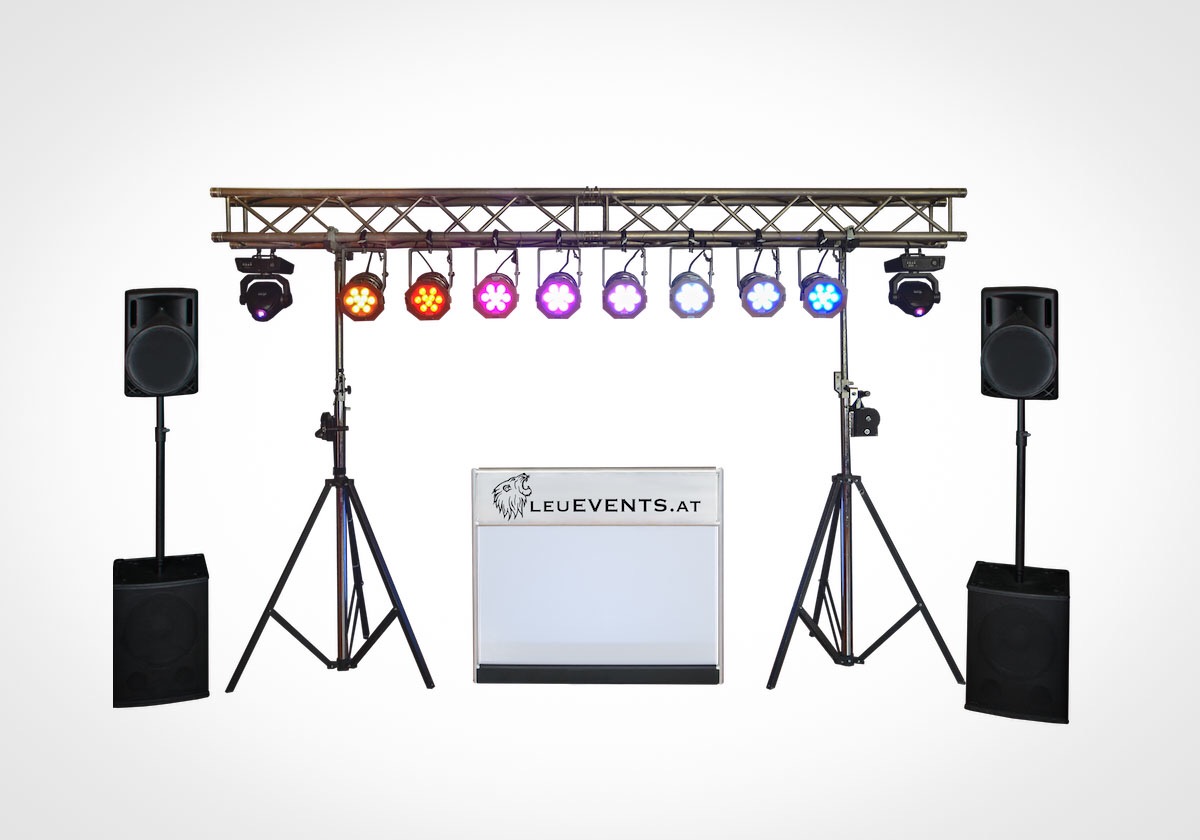 Der Klassiker unter den DJ-Paketen. Tonanlage und Lichtanlage sind perfekt auf ein großes Tanzparkett abgestimmt.